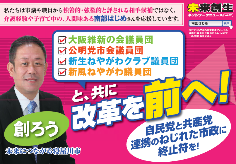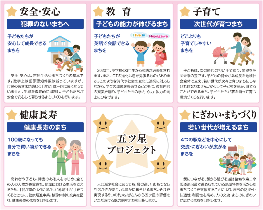 南部はじめは、寝屋川市の『真の課題』である「犯罪を無くし、治安を改善する」ことを最も優先すべき政策として『新・五ツ星☆プロジェクト』をお示ししてまいります!