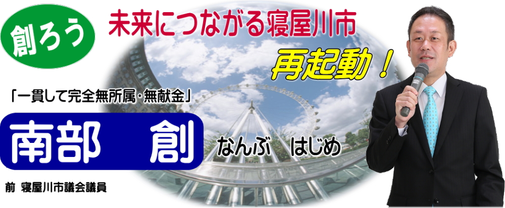 前 寝屋川市議会議員 未来創生 南部 創(なんぶ はじめ)